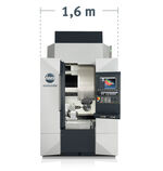 Ist doch erstaunlich, wie viel geballte Schleiftechnik von Haas Schleifmaschinen man auf nur 1,60 m Breite unterbringt, oder? Eine Spindel mit 8.000 1/min und 12 kW (optional 18.000 1/min oder 70.000 1/min) zum Beispiel. Dazu einen Werkzeugwechsler, den Sie mit 9 Schleifscheiben à 225 mm Durchmesser bestücken können. Eine Abrichteinheit (Parallel oder XING-Dressing) und eine Automatisierungeinheit mit 4 Paletten haben wir auch integriert.