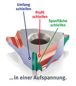 Haas Schleifmaschinen: Umfang, Profil und Spanfläche schleifen in einer Aufspannung.